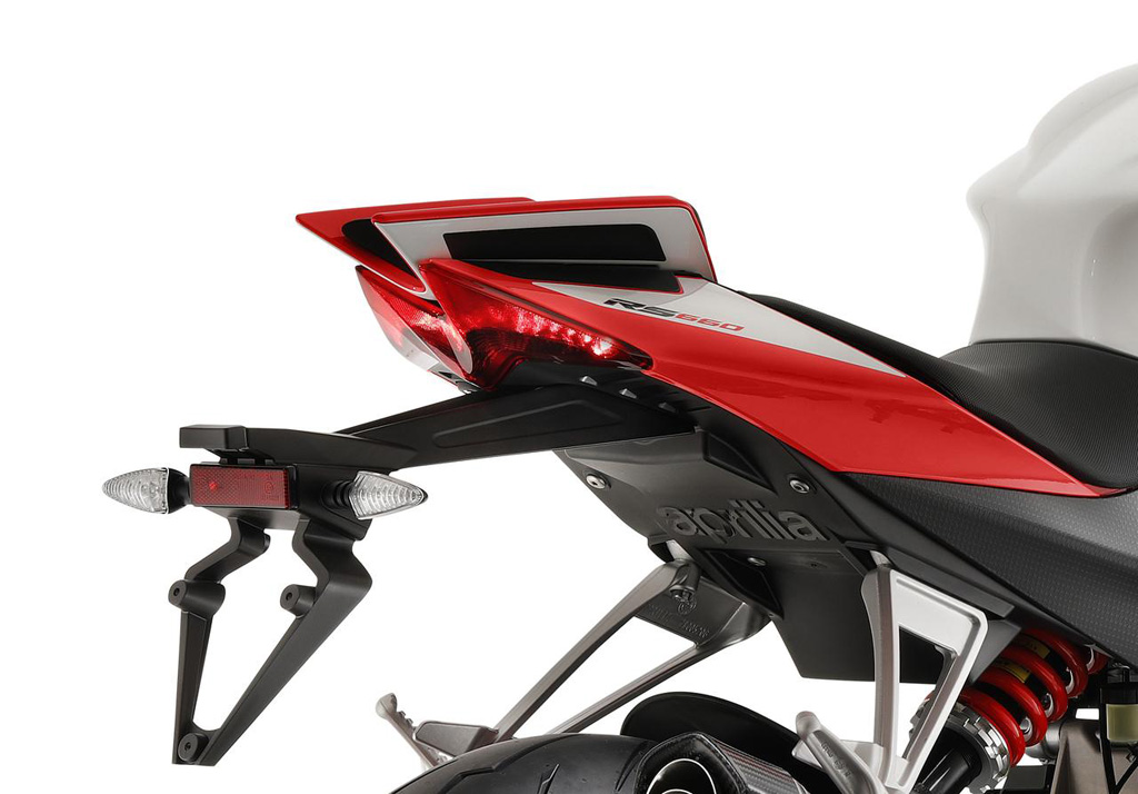 �X�^�C��: �V����̃A�v�����A�A�v�����ARS 660 �̓X�^�C���Ƃ����_�ł��ۗ����Ă���A����̃A�v�����A�X�|�[�c�o�C�N�̃V�F�C�v�̕������������Ă��܂��B�f�U�C���͊v�V�I�Ő�������Ă���A�X�|�[�e�B�ł��B�A�v�����A�X�^�C���Z���^�[�ł͋ɒ[������R���Z�v�g���̗p���邱�ƂȂ��A�\�ʐς̏��Ȃ��_�C�i�~�b�N�Ń��_���Ȍ`��ݏo���A���C�_�[�ƃp�b�Z���W���[�ɑ��ăX�|�[�c�o�C�N�ł���Ȃ���J�����Ɖ��K������A�����Ɍy�ʂŃR���p�N�g�����������邱�Ƃ�ڕW�Ƃ��Ă��܂��B�t�F�A�����O�̎�ȓ����ł���@�\�́A�A�v�����A�̃X�|�[�c�o�C�N���L���g���v��LED �w�b�h���C�g�A�Z���u���ł��B 2 �̃��C���̃w�b�h���C�g�̎��͂ɂ̓f�C���C�g��z�u���Ă���A�ǂ̂悤�ȏ������ł�RS 660 �������ɔF���ł��܂��B�^�[���V�O�i����DRL �v���t�B�[���ɑg�ݍ��܂�A�t�����g�G���h������ɃR���p�N�g�ɂȂ��Ă��܂��B���C�g�V�X�e���̕����̋@�\�ɂ���Ă���Ɉ��S�ȃ��C�f�B���O���\�ɂȂ��Ă��܂��B�g���C���C�g�Z���T�[�ɂ���ă��[�r�[���������I�ɓ_�����A�ً}�u���[�L���ɂ͎����L�����Z�����̃^�[���V�O�i�����_�����܂��B����ɁA�R�[�i�����O���C�g�@�\�ɂ���Ēlj����ꂽ2 �̃��C�g���J�[�u�̓������Ƃ炷���ƂŃR�[�i�����O���̉��������߂邱�Ƃ��\�ɂȂ��Ă��܂��B