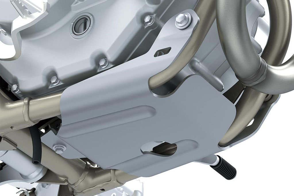 KLX230 SHERPA�ɂ̓A���~���X�L�b�h�v���[�g��W���������Ă��܂��B�g���C�����C�f�B���O���̏�Q������G���W��������ی삵�AKLX230 SHERPA�̃^�t�ŃA�E�g�h�A�M�A���b�N�ȃX�^�C�����O�ɂ��v�����Ă��܂��B