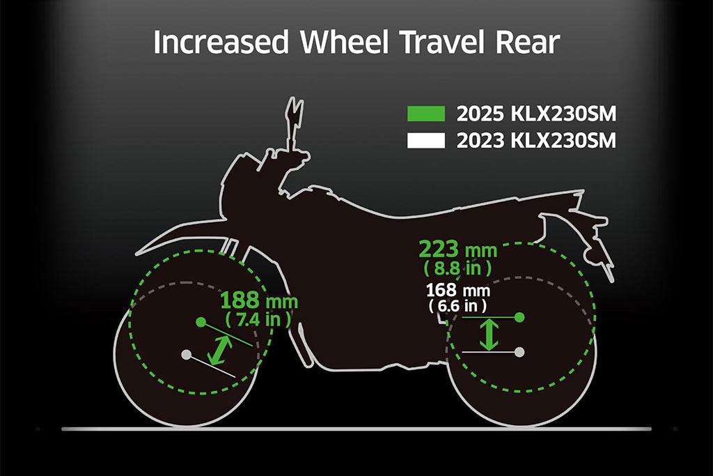KLX230SM�̐v�ɂ����āA�y�ʂ����쐫�̍����ԑ̍\������邱�Ƃ͏d�v�ȃ|�C���g�̈�ł����B�V���v���ȋ��G���W���ƁA�y�����^�[�\���̃Z�~�_�u���N���[�h���t���[���́A�R���p�N�g�Ȏԑ̍\���Ɋ�^���Ă��܂��B�܂��A�G���W���ƃt���[���̗D�ꂽ�o�����X�ɂ��A���L�����C�_�[���y���߂�悤�ȃp�t�H�[�}���X���������Ă��܂��B