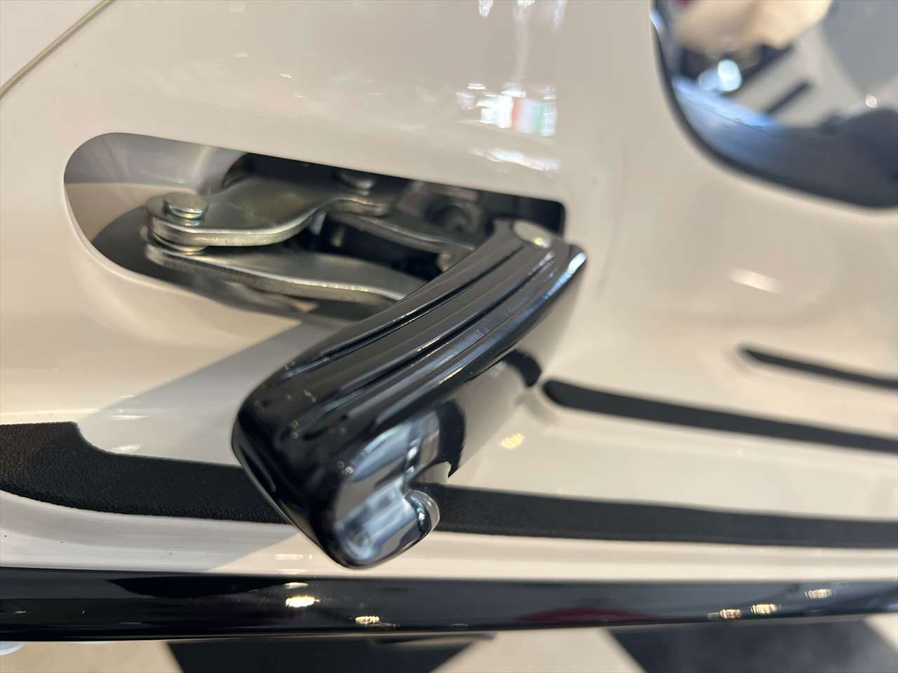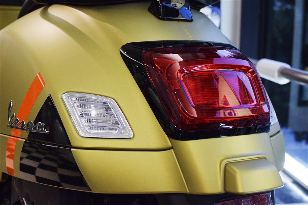 Vespa GTS 300 SuperSport �ɂ́A2��ނ̃J���[�X�L�[�����p�ӂ���Ă���A�J�[�{�����̃C���T�[�g�ƃV���C�j�[�u���b�N�̃f�B�e�[�����A�ǂ���̃{�f�B�J���[��I��ł������ȃA�N�Z���g�ɂȂ�܂��B �L�����N�^�[�m�ɂ���d�グ��X�|�[�e�B�ȃO���t�B�b�N����_�Ɏ{����A����ɉ��K�ȃV�[�g�͍��i���̑f�ނƃR���g���X�g�̂���X�e�b�`�ő�������Ă��܂��B