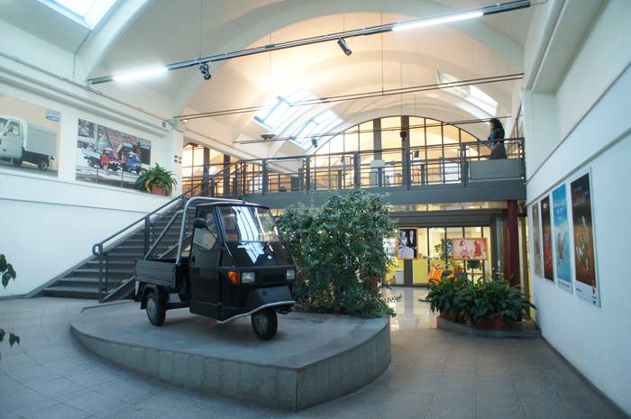 �|���f�f���ɏ��݂���PIAGGIO�{�ЁB�H��ɗאڂ��ď��݂��܂����A�L��ȕ~�n�̂��ߋ����I�ɂ͂��Ȃ肠��܂��B�Ⴆ��Ȃ�A���X�i�X�N�[�^�[�C�^���A�[�m�����Z���g���[���j�̋߂��ɏ��݂��铌����w�̖ʐς̂悤�ɁA��̒��S�̂�PIAGGIO�ЂɂȂ��Ă���܂��BPIAGGIO�{�Г��͉�����Ɉ��Ă���܂��B�x�X�p�̔N�ゲ�ƂɃX���[�K���ƂȂ����悪����ꂽ��A��ヂ�f����APE�Ȃǂ��ӏ��ӏ��ɓW������Ă���܂��B�Ј��e���̏������A�f�U�C����}�[�P�e�B���O�Ȃǂ̐����ȊO�̋Ɩ����s���@�ւ�����܂��B