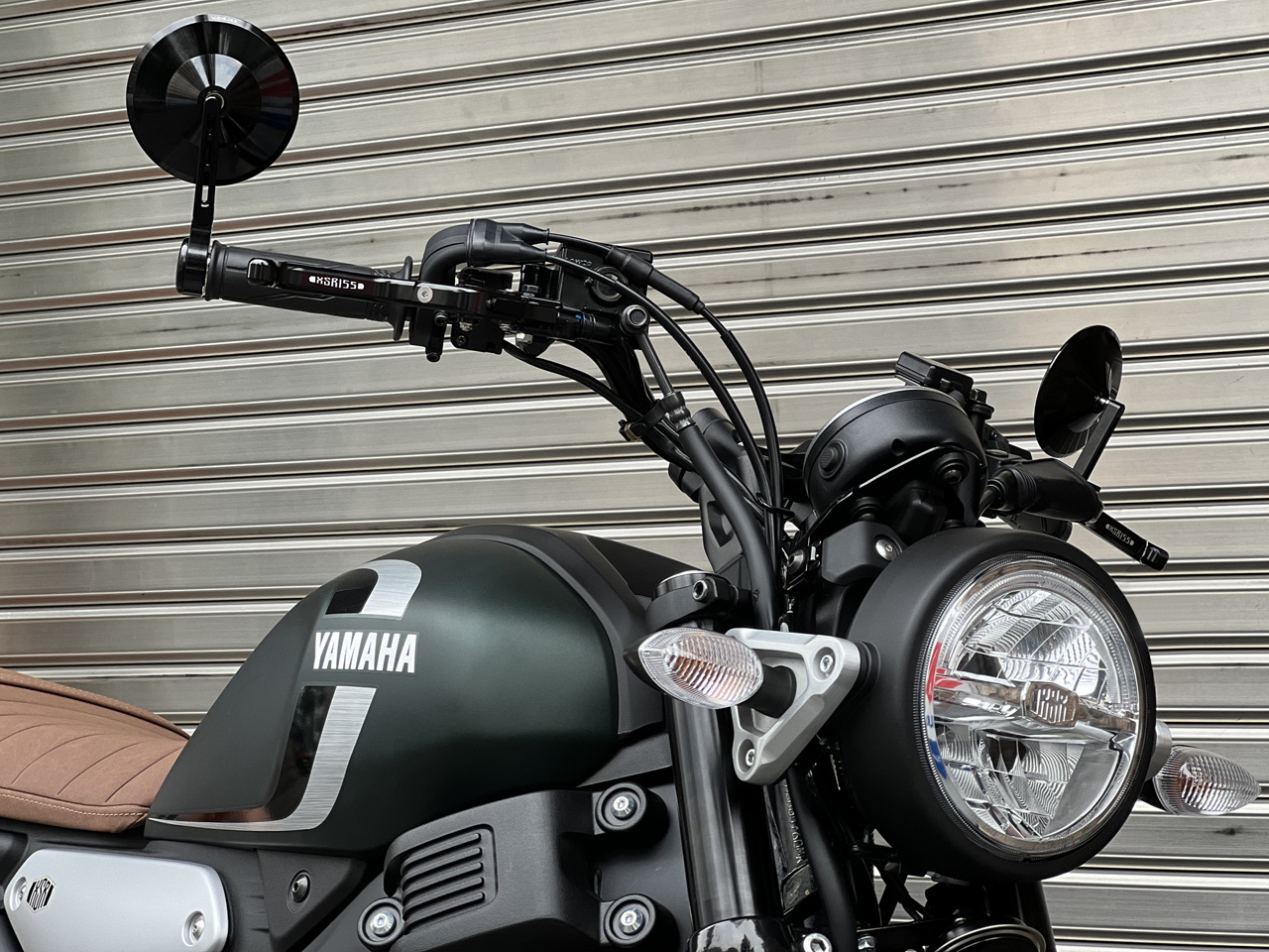 高回転域での透明感あるサウンドを発揮する3段膨張マフラーは、エキゾーストパイプに三元触媒を搭載し高回転域での透明感あるサウンドを発揮する。ショートタイプのサイレンサーはクラシックなスタイルに調和する大径サイズを採用。マフラープロテクターにはパンチホールをデザインし、XSRらしいレトロなスタイリングとなっている。