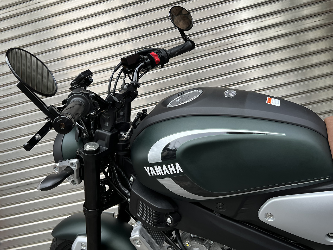 XSRシリーズに共通する水平基調のデザインを継承し、ヤマハのヒストリカルなモデルの意匠をモチーフとしたタックロールシートを採用。クラフトマンシップを感じさせるシートは美しい加工と高い質感を併せ持ち、ロングなデザインによりライディングポジションの自由度を高めている。