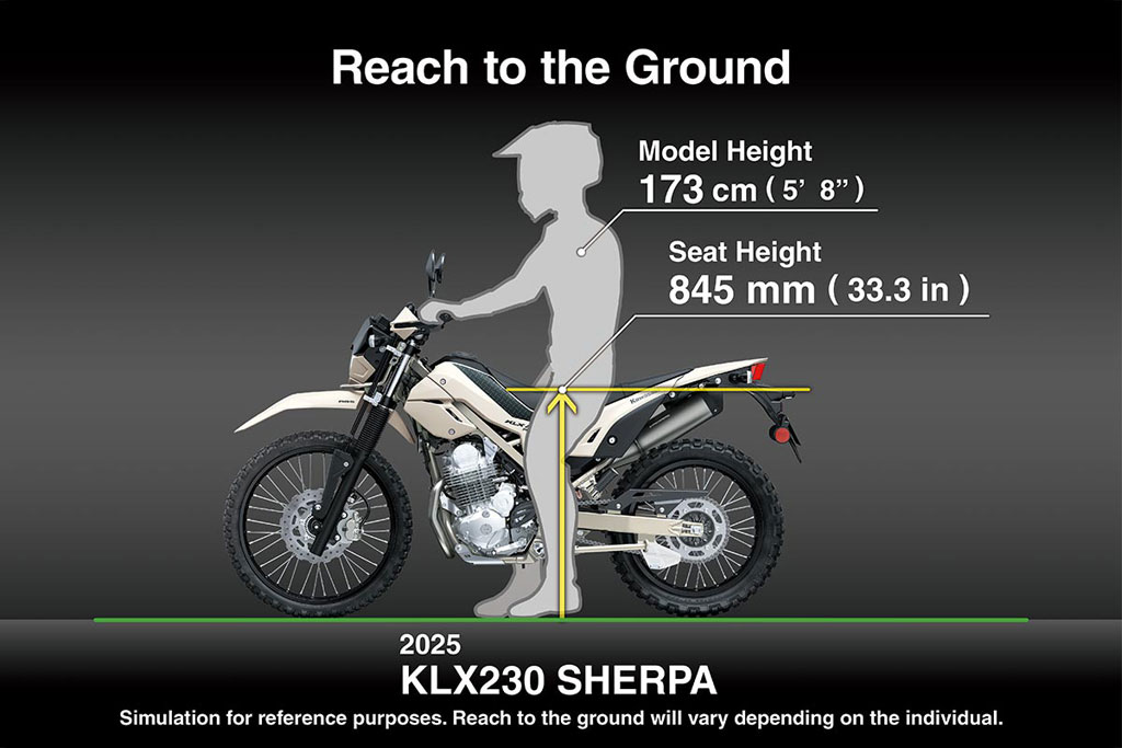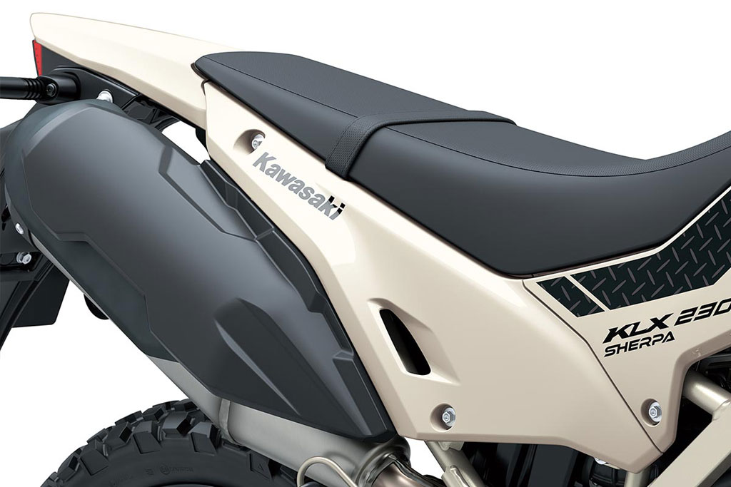 �@�\�I�ŃR���p�N�g�A���e���݂₷��KLX230 SHERPA�̃X�^�C�����O�́A���I�ȃC���[�W���\�z���邽�߂ɐ��ݏo����܂����B�ԑ̃J���[�ɂ͎��R��z�N������A�[�X�J���[���̗p�B�w�b�h���C�g�J�o�[��V�����E�h�A�T�C�h�J�o�[�Ȃǂ̓R���p�N�g�Ŏ��p�I�ȃ{�f�B���[�N��V���Ƀf�U�C���B
