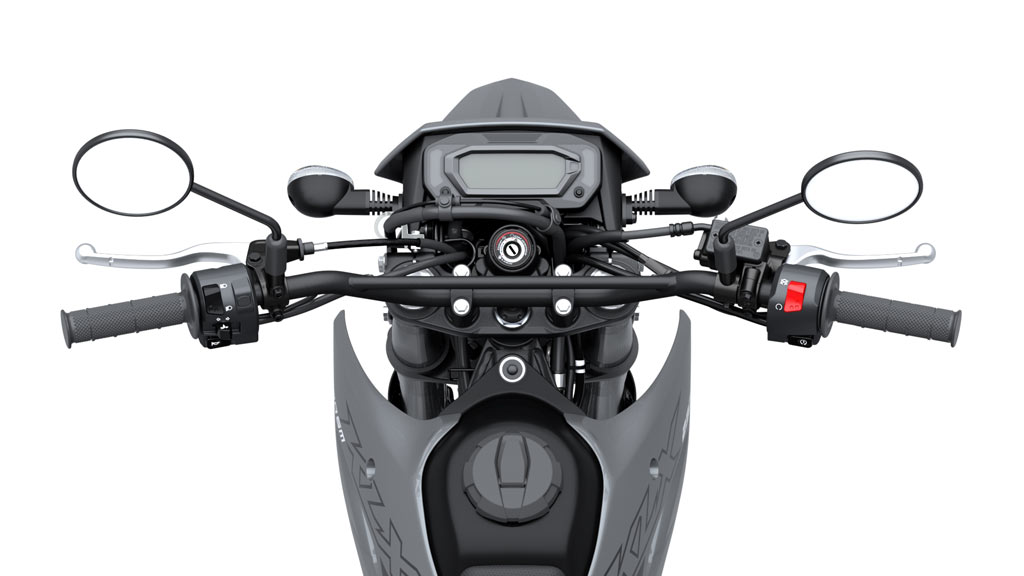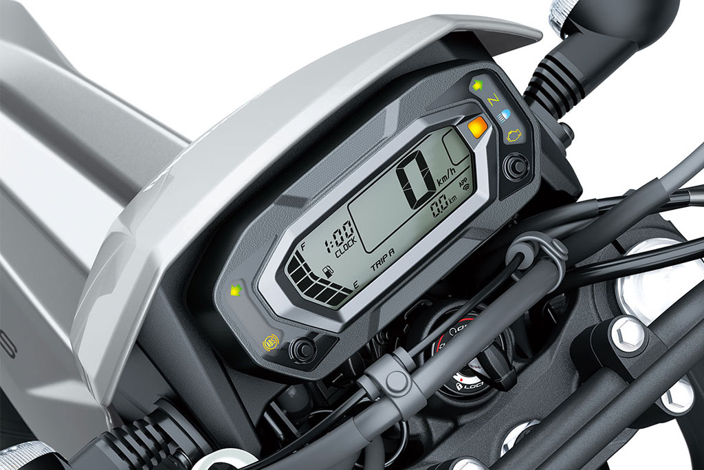 KLX230SM�́A�X�}�[�g�t�H���ڑ��@�\�𓋍ڂ����t���f�W�^���̃C���X�g�D�������g���̗p���Ă���A�����ƒ����I�ȑ��쐫�����߂Ă��܂��B�܂��A�t���[�G���^���N�́A�I�t���[�h���s�ɓK�����`��ƍq�������̃o�����X���l����7.6L�̗e�ʁB
