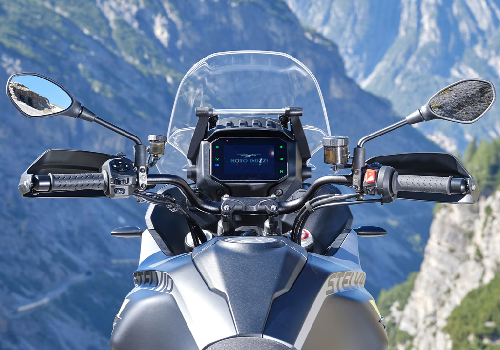 ステルビオには、コーナリング ABS やトラクション コントロール、フル LED ライト、クルーズ コントロール、5 インチ フルカラー ディスプレイ、オフロード モードを含む 5 つのカスタマイズ可能なライディング モードなど、高度な機能が統合された最先端のテクノロジー パッケージが装備されています。