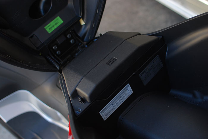 �p�[�L���O���o�[��ɂ��鍕���t�^�́A����]������ƃR���r�j�t�b�N�ɐؑւ���܂��BPIAGGIO�n�X�N�[�^�[�ɑ����T�C�h�ɃX���C�h�����Ďg�p����t�b�N�������x����������ہB |