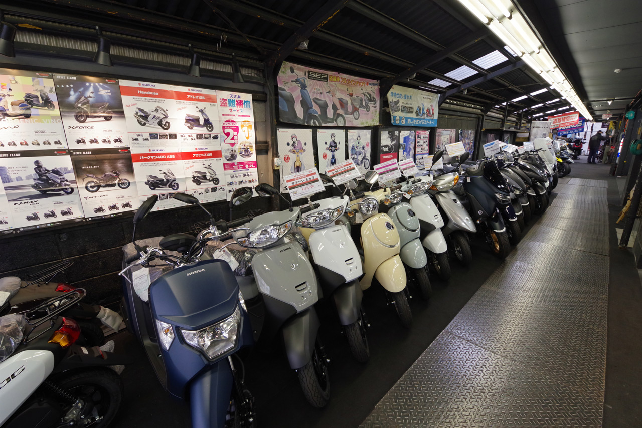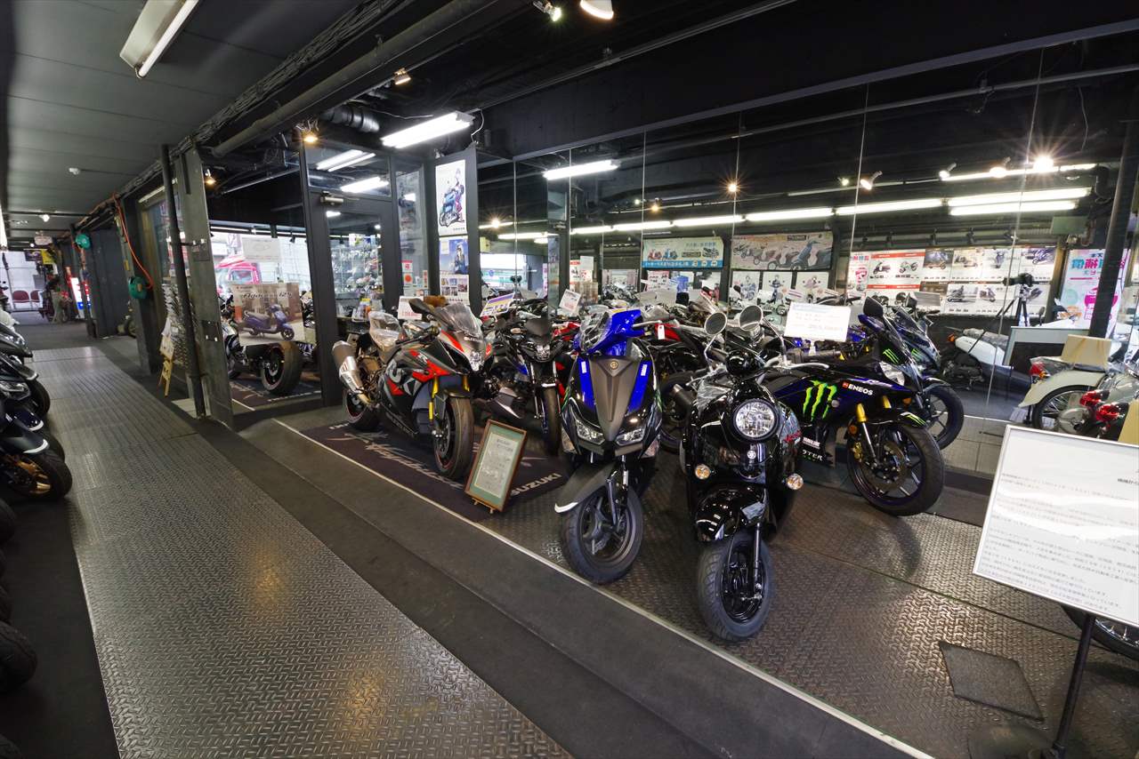 | ���r�b�r������o�����ʓW�� �r�b�r�ɍ����O�̎�v���[�J�[�̃o�C�N����ēW���B ��̃r���Ɋe���[�J�[�̃V���[���[�����W�����Ă��邩��A�~�����o�C�N�̔�r�������e�Ղɉ\�B �܂��s���ɂ���SCS�l�b�g���[�N�𗘗p�����X�܂̎��q�̔�r������w�����\�ł��B |