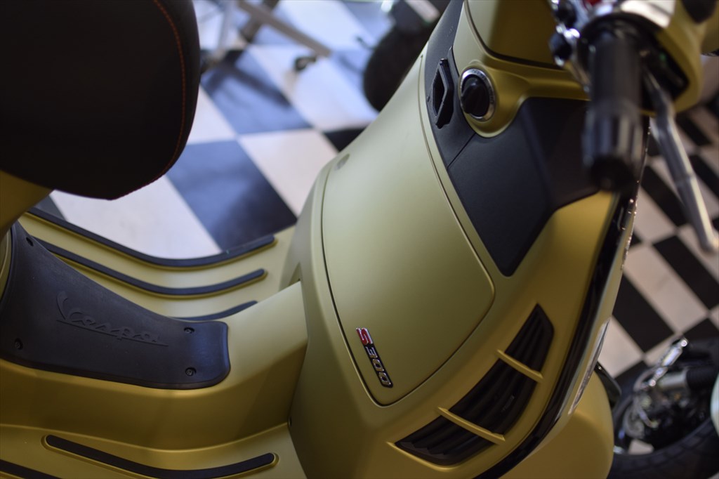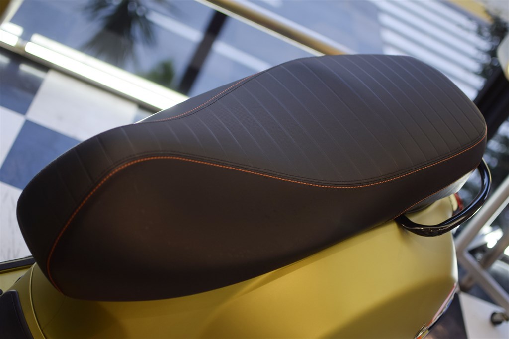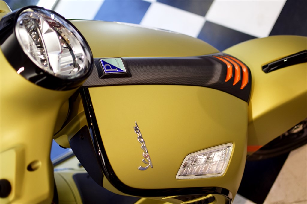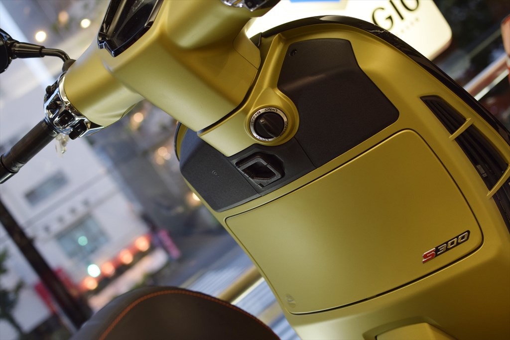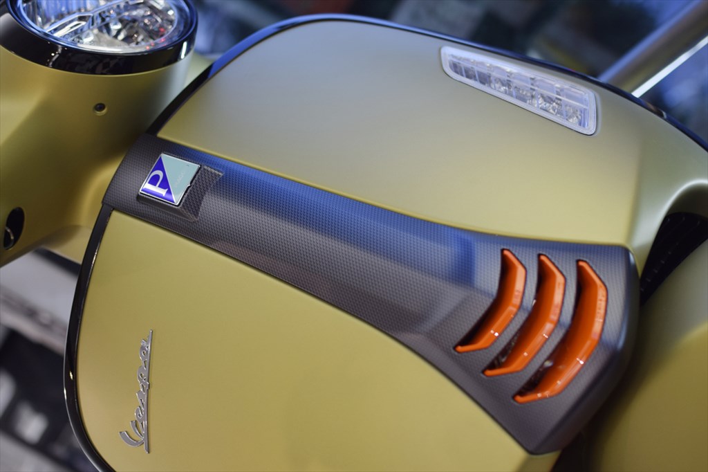 Vespa GTS 300 SuperSport �ɂ́A2��ނ̃J���[�X�L�[�����p�ӂ���Ă���A�J�[�{�����̃C���T�[�g�ƃV���C�j�[�u���b�N�̃f�B�e�[�����A�ǂ���̃{�f�B�J���[��I��ł������ȃA�N�Z���g�ɂȂ�܂��B �L�����N�^�[�m�ɂ���d�グ��X�|�[�e�B�ȃO���t�B�b�N����_�Ɏ{����A����ɉ��K�ȃV�[�g�͍��i���̑f�ނƃR���g���X�g�̂���X�e�b�`�ő�������Ă��܂��B