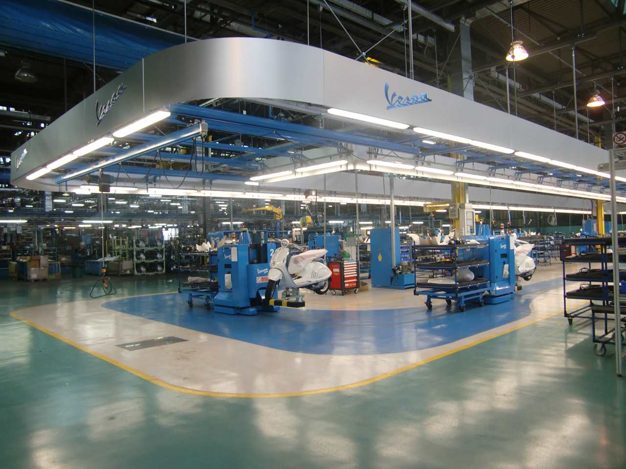 �|���f�f���ɏ��݂���PIAGGIO�{�ЁB�H��ɗאڂ��ď��݂��܂����A�L��ȕ~�n�̂��ߋ����I�ɂ͂��Ȃ肠��܂��B�Ⴆ��Ȃ�A���X�i�X�N�[�^�[�C�^���A�[�m�����Z���g���[���j�̋߂��ɏ��݂��铌����w�̖ʐς̂悤�ɁA��̒��S�̂�PIAGGIO�ЂɂȂ��Ă���܂��BPIAGGIO�{�Г��͉�����Ɉ��Ă���܂��B�x�X�p�̔N�ゲ�ƂɃX���[�K���ƂȂ����悪����ꂽ��A��ヂ�f����APE�Ȃǂ��ӏ��ӏ��ɓW������Ă���܂��B�Ј��e���̏������A�f�U�C����}�[�P�e�B���O�Ȃǂ̐����ȊO�̋Ɩ����s���@�ւ�����܂��B