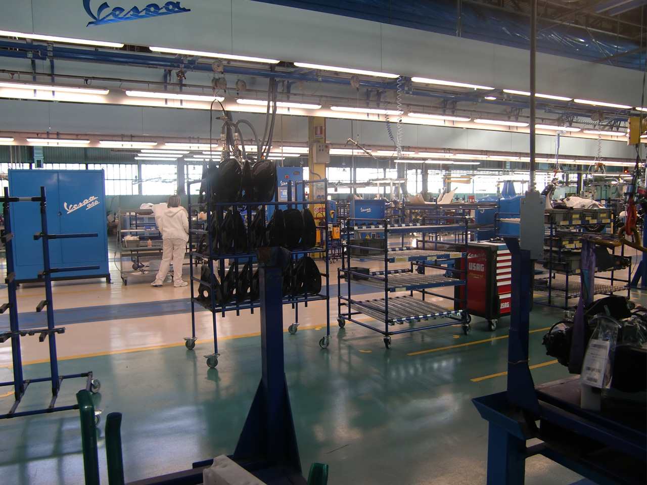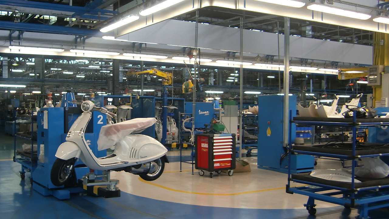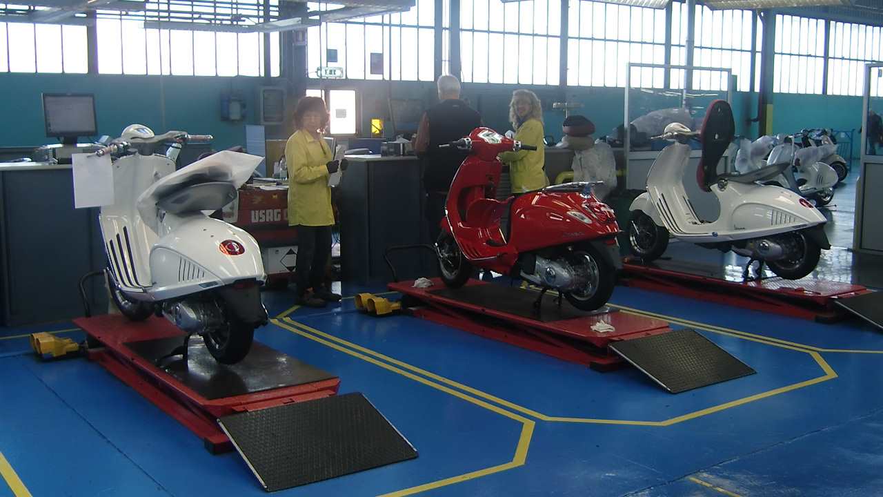 �C�^���A �|���e�f�[���ɂ���s�A�b�W�I�{�Ђɂ��鐶�Y���C���B�uPIAGGIO�v�́A���X1884�N�A���i���h�E�s�A�W�I���ɂ��C�^���A�őn�݂��ꂽ���X�͗A���@�탁�[�J�[�B�S���ԗ���q��@�̐��Y�Ŕ|��ꂽ�Z�p��w�i�ɑ���E���ȍ~�A�X�N�[�^�[���Y�ɂ����o���A�����Ő��E�I�ɑ�q�b�g�ƂȂ���"Vespa"���a�����܂��B���Ȃ��������j����|���e�f�[���̍H��~�n���ł́A���N�|���Ă����Z�p�ŃC�^���A���ے�����|�p�I��iVespa���n���̐E�l���������グ�Ă���܂��B�H������̗l�q����ށA�B�e����͓̂��{�œ��X�����ƂȂ�܂��B������̃y�[�W�ł�Vespa���ǂ̂悤�ɂ��Ċ����ԂƂȂ�̂����킩��A�{�M�����ƂȂ�摜�⓮����������������܂��B